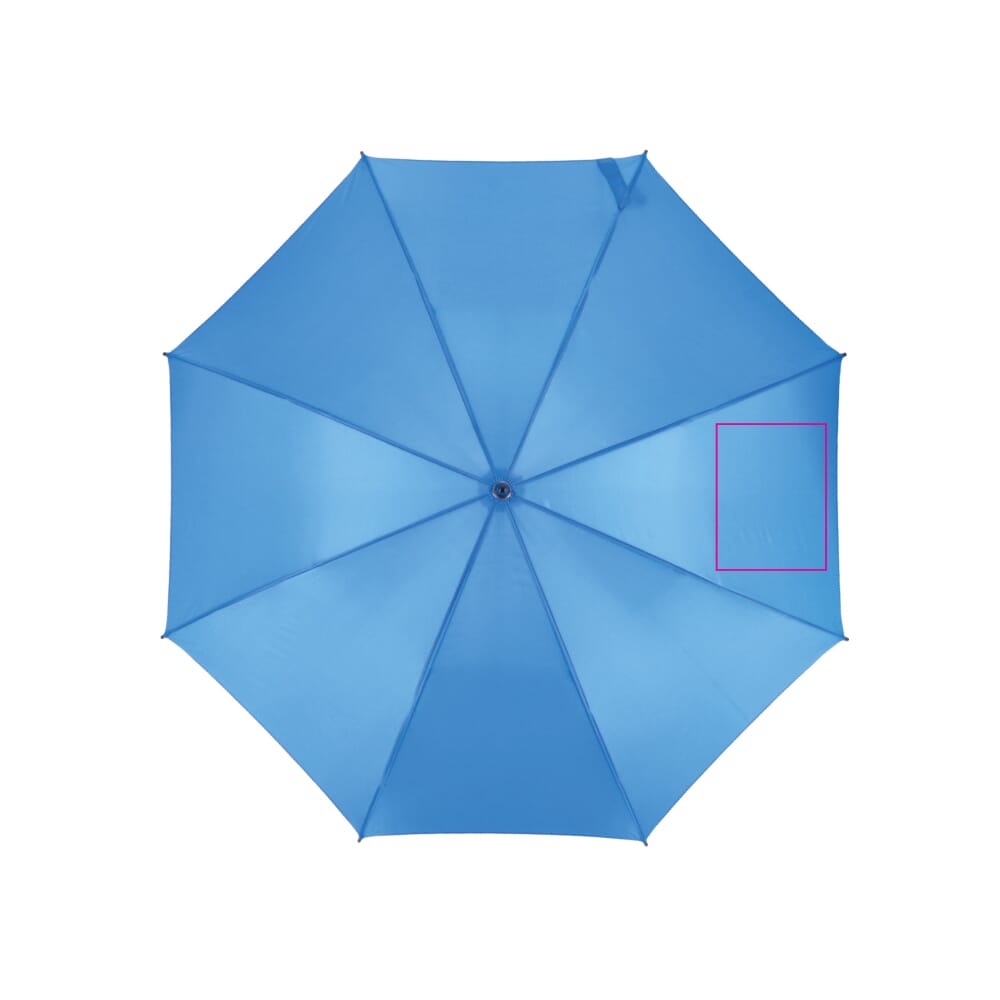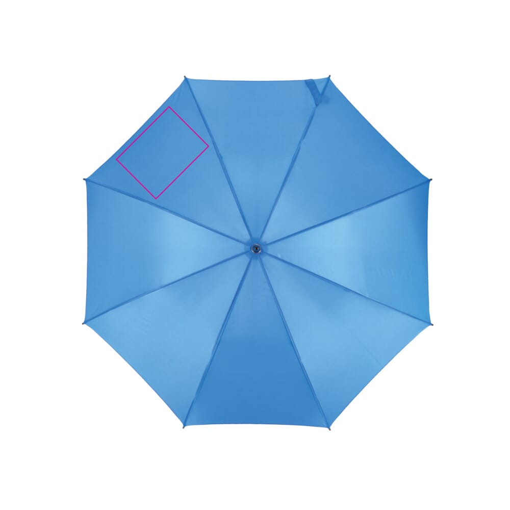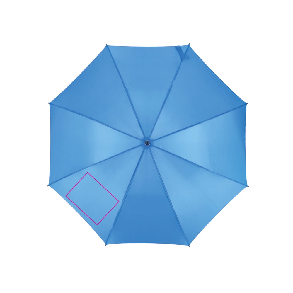 Deze 23" stok paraplu heeft een ergonomisch PP-handvat voor een comfortabele grip en een duurzaam fiberglas frame. Voorzien van automatische opening, is het ideaal voor dagelijks gebruik of als golfparaplu.